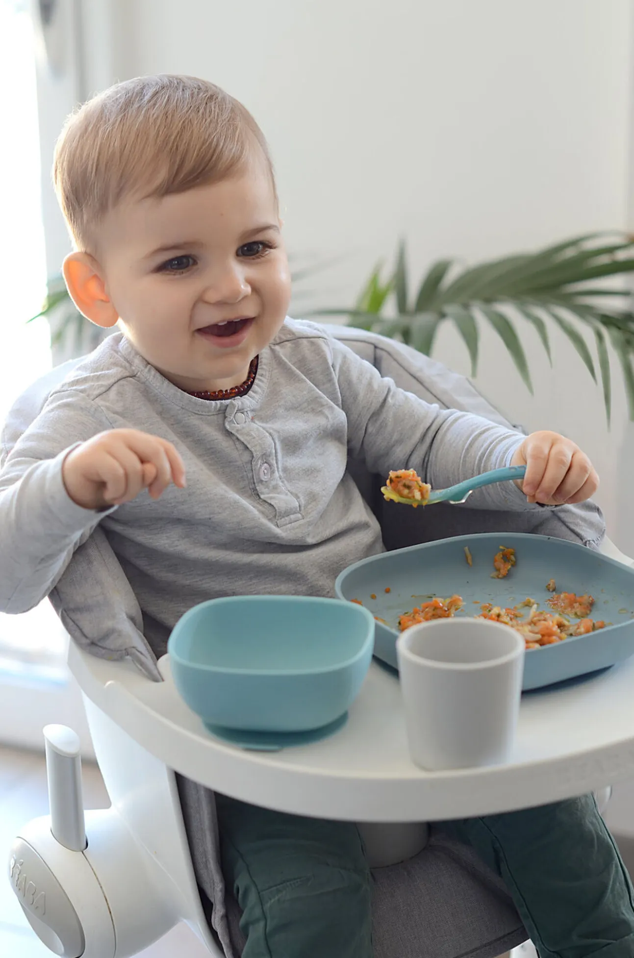 - Coffret Repas Silicone Compose D’Une Assiette Et D’Un Bol Avec Ventouse, D’Un Verre Et D’Une Cuillere 2Eme Age Silicone