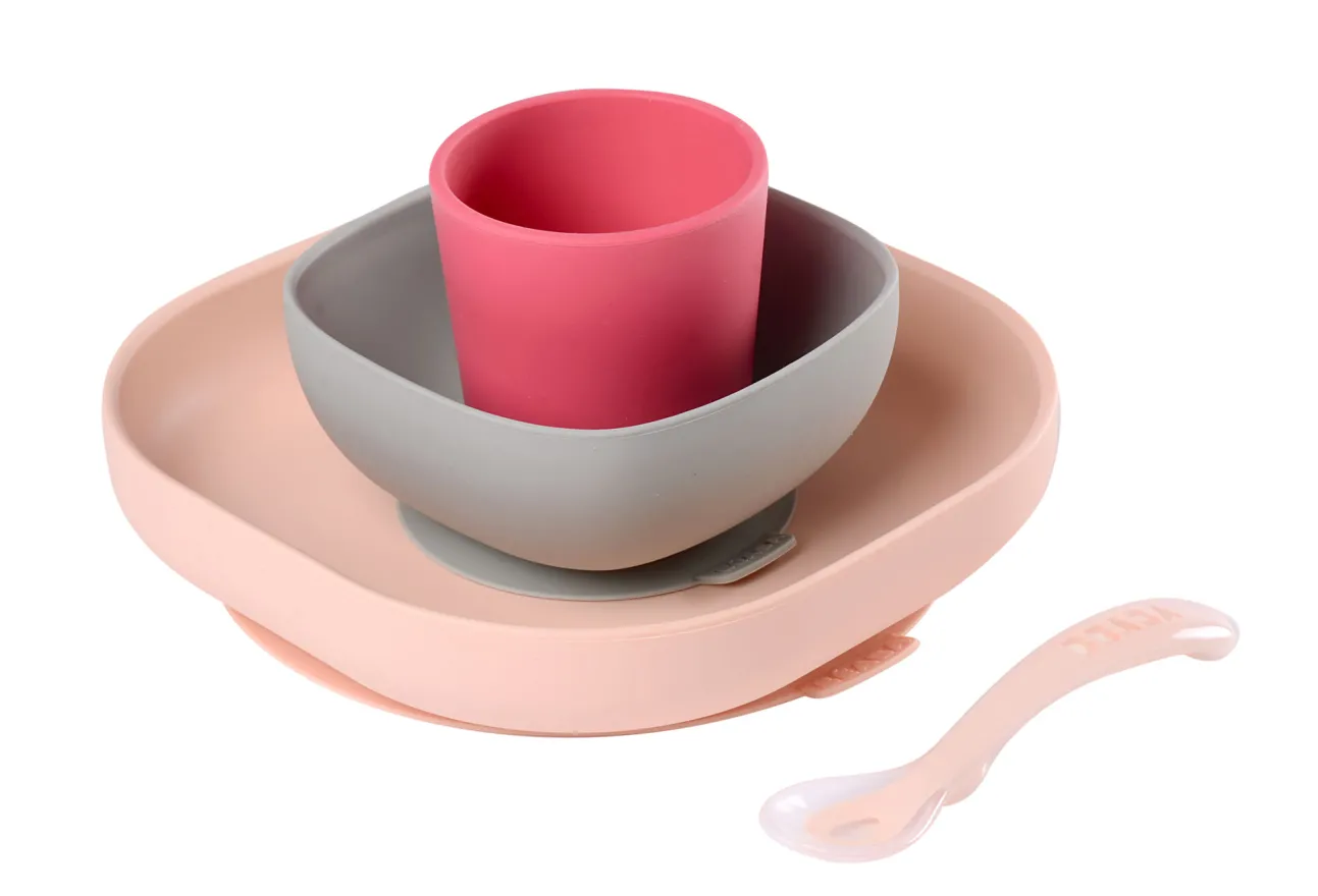 - Coffret Repas Silicone Compose D’Une Assiette Et D’Un Bol Avec Ventouse, D’Un Verre Et D’Une Cuillere 2Eme Age Silicone